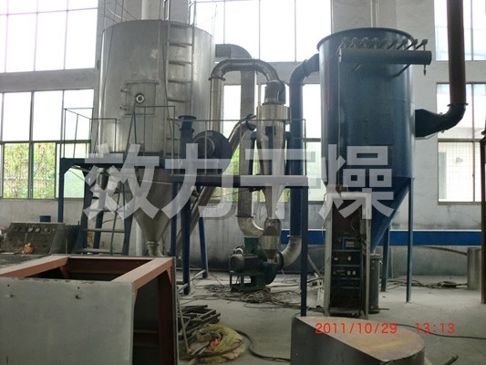 中药浸膏高速离心喷雾装置是离心式喷雾干燥技术在特定物料干燥中的应用,也是利用高速离心式雾化器使物料分散成雾状,与热空气充分接触,完成瞬间干燥,形成粉状成品的干燥装置。